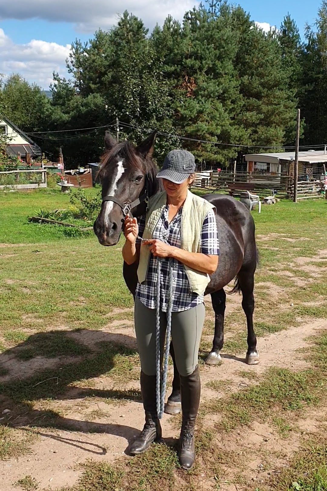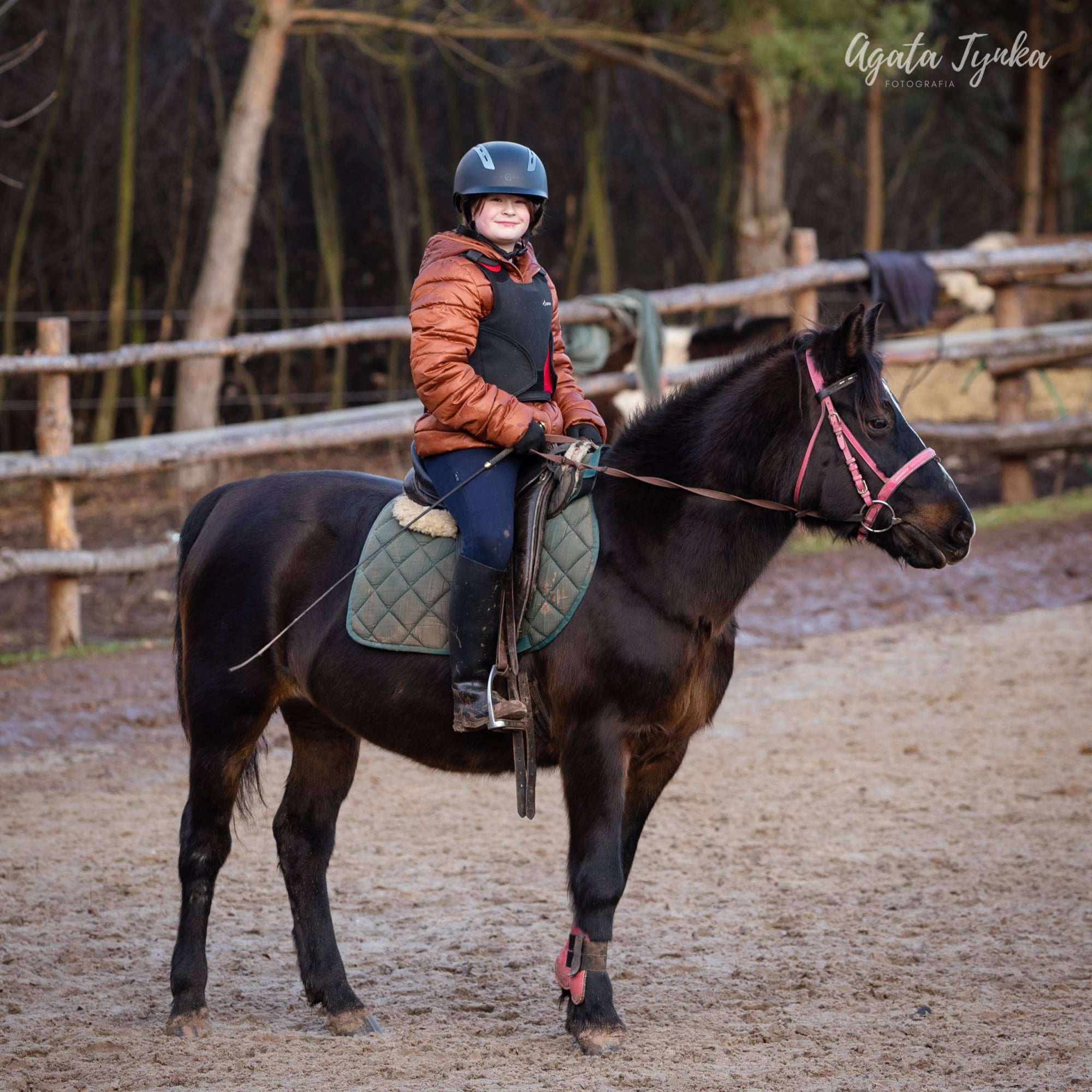 Nieduża kara klaczka, chętnie pracująca z dziećmi.