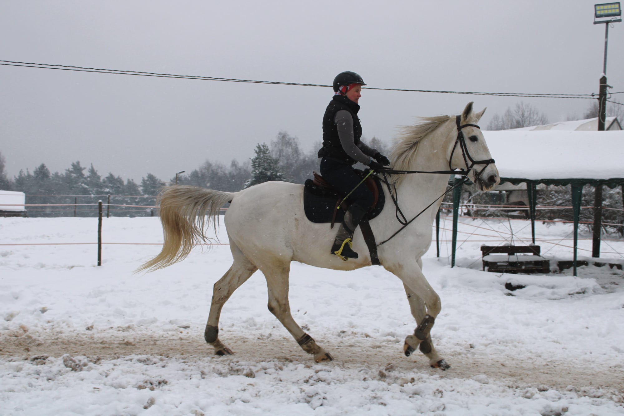 Po przyjeździe zaczęliśmy również szukać dla naszego Golden Boya (takie miano zyskał w stajni) opiekuna, który byłby gotowy na współpracę ze sportowym koniem po przejściach. Na szczęście Pani Ola podjęła się tego wyzwania i aktualnie tworzy z Siwym piękną parę. Siwy jest znowu zadbanym koniem, który świetnie jeździ i jest traktowany z troską i miłością, której tak potrzebował.