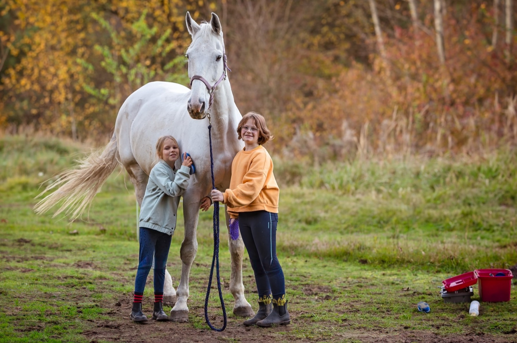 Po przyjeździe zaczęliśmy również szukać dla naszego Golden Boya (takie miano zyskał w stajni) opiekuna, który byłby gotowy na współpracę ze sportowym koniem po przejściach. Na szczęście Pani Ola podjęła się tego wyzwania i aktualnie tworzy z Siwym piękną parę. Siwy jest znowu zadbanym koniem, który świetnie jeździ i jest traktowany z troską i miłością, której tak potrzebował.